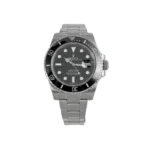 The Rolex Submariner Date 116610LN, with its 40mm stainless steel Oyster case, embodies durability and iconic design. The black Cerachrom bezel and matching black dial with Chromalight markers ensure functionality and clarity, even in low light. A Cyclops lens magnifies the date at 3 o’clock, adding practical utility.